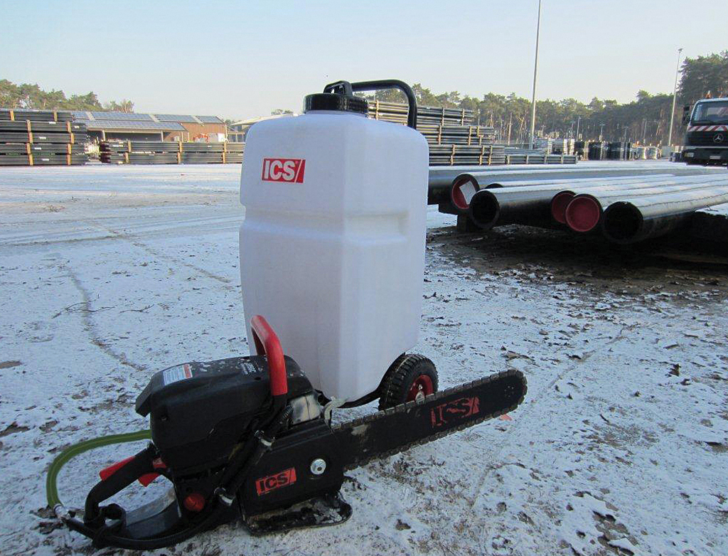 В условиях отсутствия централизованного водоснабжения портативный бак – это оптимальное решение для подачи воды пиле ICS во время работы. Он имеет объем35 литров и оснащен насосом с производительностью 5 литров в минуту с давлением 2.4 атмосферы.
